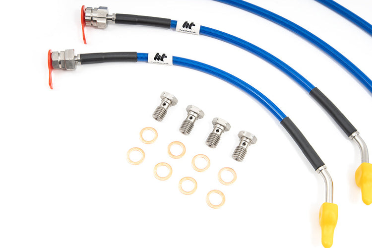 Hosetechnik lines are hand-finished with Teflon-lined braided stainless steel bodies and custom-machined stainless fittings. They are available in no less than 12 hard-wearing PVC sleeve colours, which look amazing, and protect against dirt and water ingress.