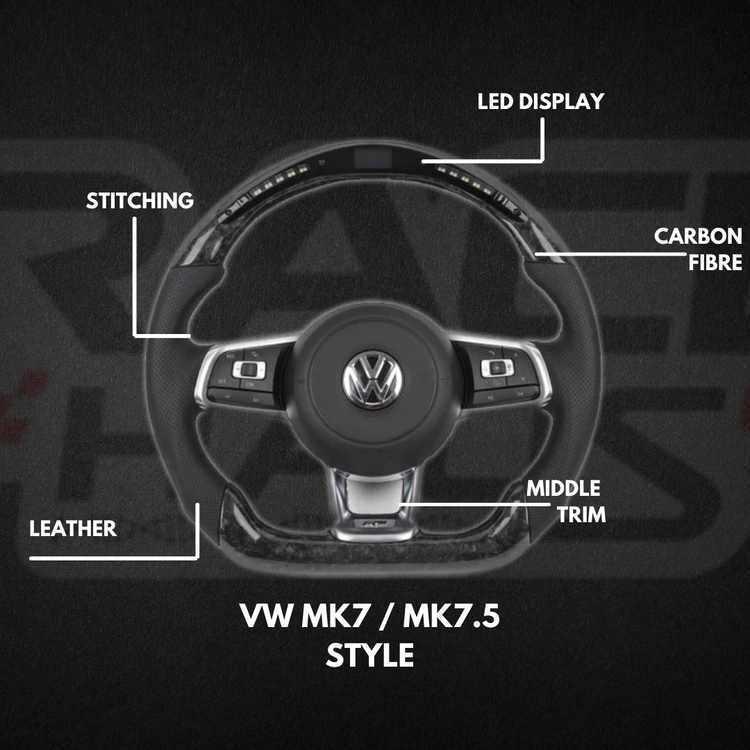 Enhance your driving experience with our brand-new Carbon Fibre steering wheel designed for Volkswagen MK7 and MK7.5 models. Customisable to your preferences, this steering wheel is crafted for both style and performance.