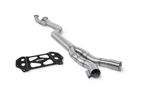 - Half system, centre replacement (X-pipe), single mid-pipe, front crossover pipe, & turbo downpipe (sports cat/de-cat)