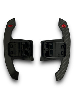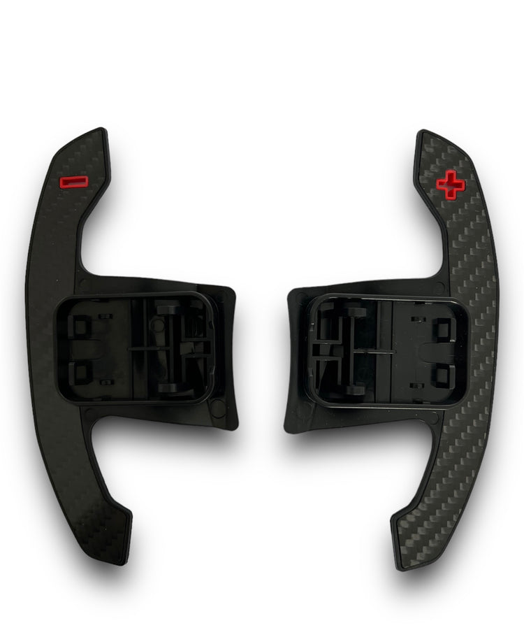 BMW G8X STYLE AUTOMATIC PADDLE SHIFTERS WITH RED DETAILS IN GLOSS CARBON FIBRE (F SERIES & G SERIES)